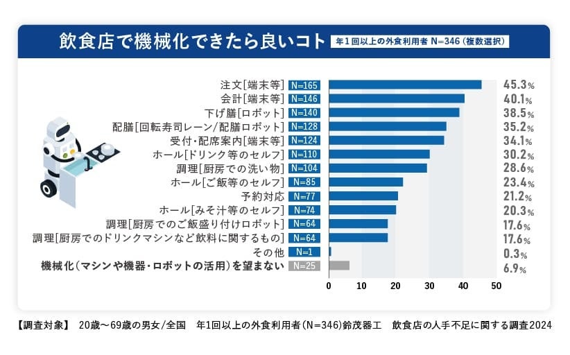 【飲食店の人手不足に関する調査(鈴茂器工)】飲食店で進む機械化に対する消費者の反応は?