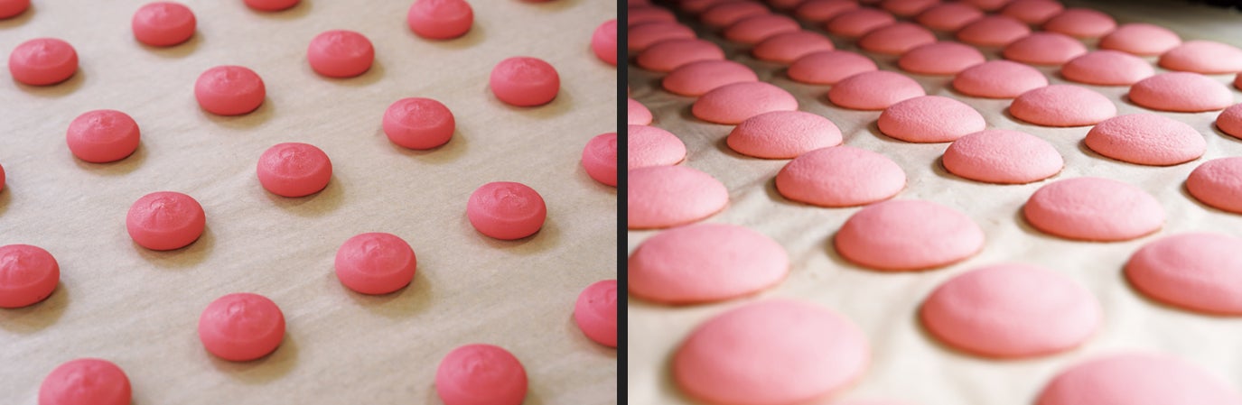 今回のリニューアルで厳選された素材の増量や材料に見直しにより、焼成時に素材が生地から溢れ出ないように、また素材の味を損なわないよう絶妙な火加減など様々な調整を行う職人の技が欠かせないのです。オーブンから出すと、おまんじゅうのようにふっくらとしていた生地が、ゆっくりと綺麗なサブレの形に変化することで、美味しい素材の味をしっかりと閉じ込めしっとりやわらかな食感に焼き上がった証拠です。