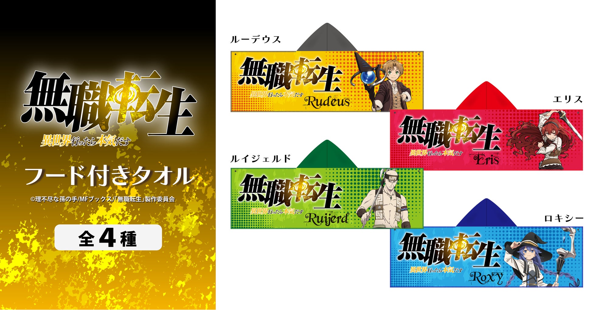 『無職転生 ~異世界行ったら本気だす~』より、フード付きタオルが本日から正式販売開始!!