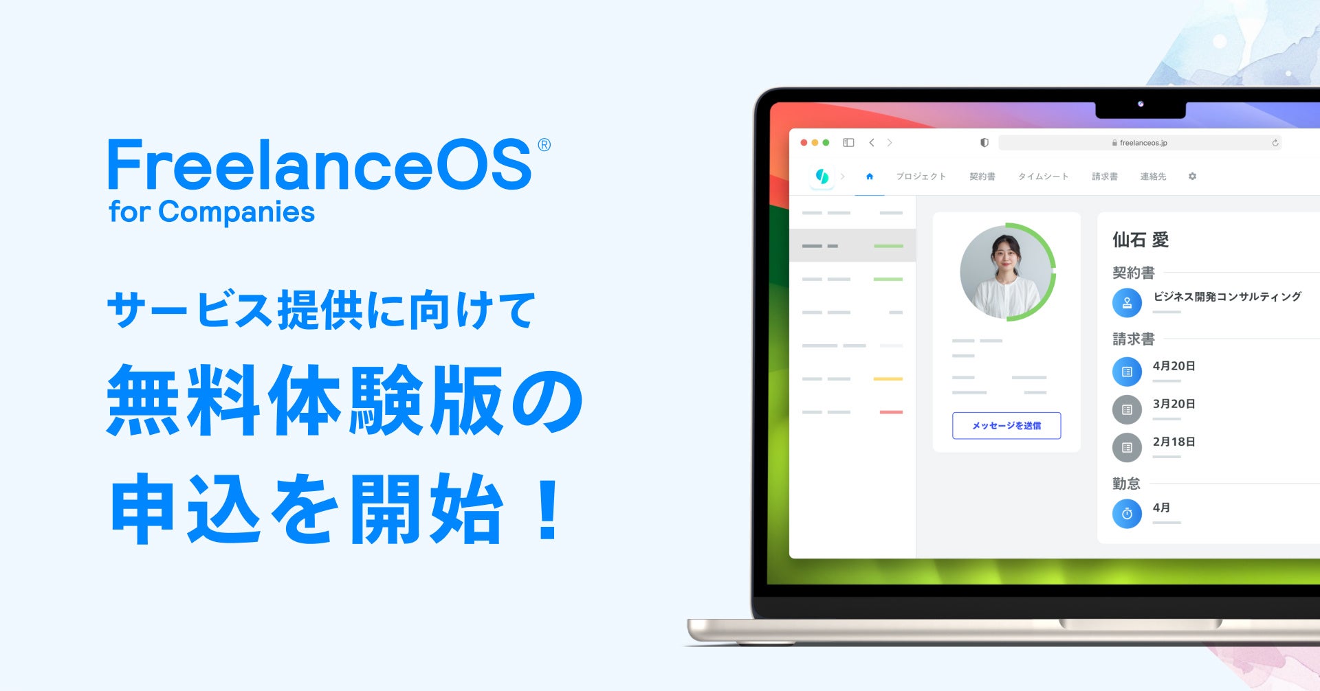 【企業向け無料体験版】フリーランス・業務委託の一元管理システム『FreelanceOS(R) for Companies』、無料体験版の申し込み受付を開始