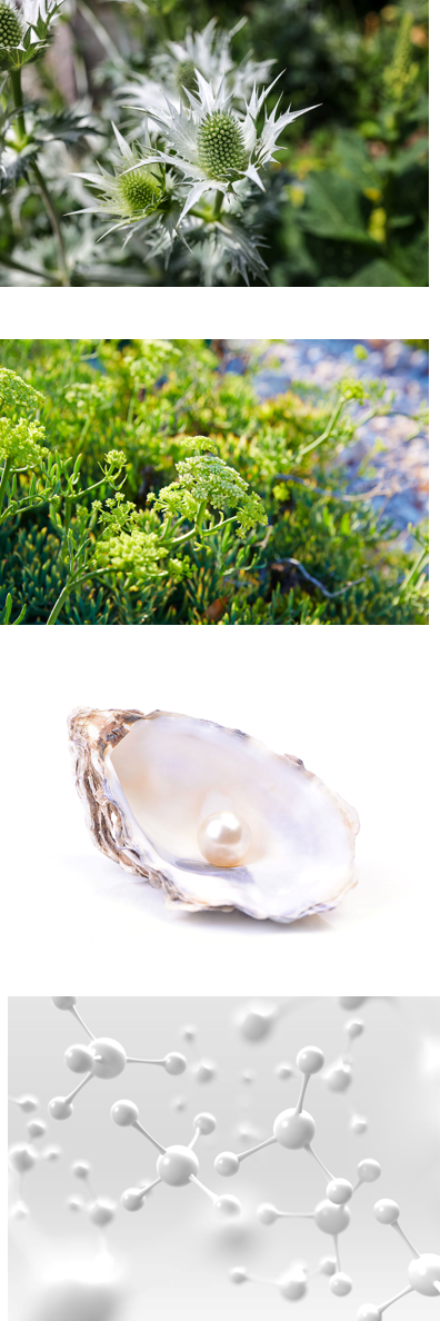 海と陸の境目という過酷な環境で育つ海浜植物クリスマムマリチマムより抽出培養された植物幹細胞培養液。肌を保護し、ツヤや潤いを与えます。