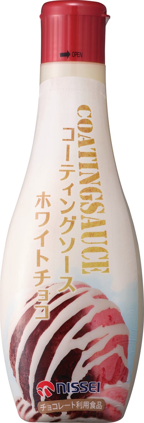 ソフトクリームの総合メーカー、日世株式会社(本社:大阪府茨木市 社長:吉田文治)は、当社初の白色のトッピング素材「コーティングソースホワイトチョコ」を発売します。このトッピングソースは、ソフトクリームなどの冷たい食品に上掛け(トッピング)すると硬化するコーティングソースで、ソフトクリームなどを飾るだけでなく、パリっとした食感が楽しめるように設計した商品です。