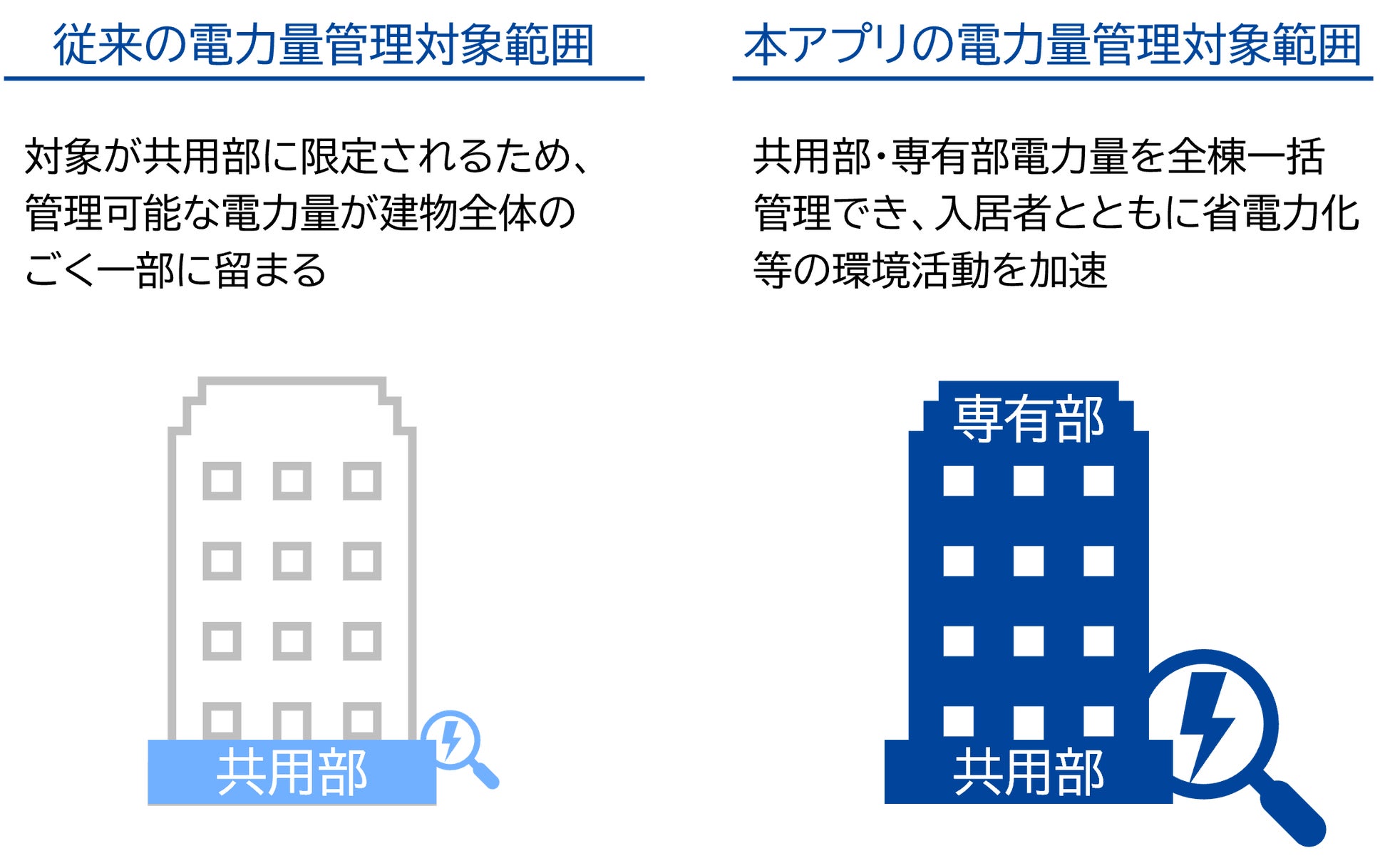 (従来/本アプリでの電力量管理対象範囲の違い(イメージ))