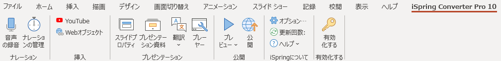 ※ iSpring Conveter Pro 10 は、iSpring Suite Max、iSpring Suite 10 の機能縮小版となります。