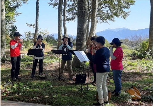 柔らかい音色が特徴のオカリナが白馬岩岳の山頂に響き渡ります。