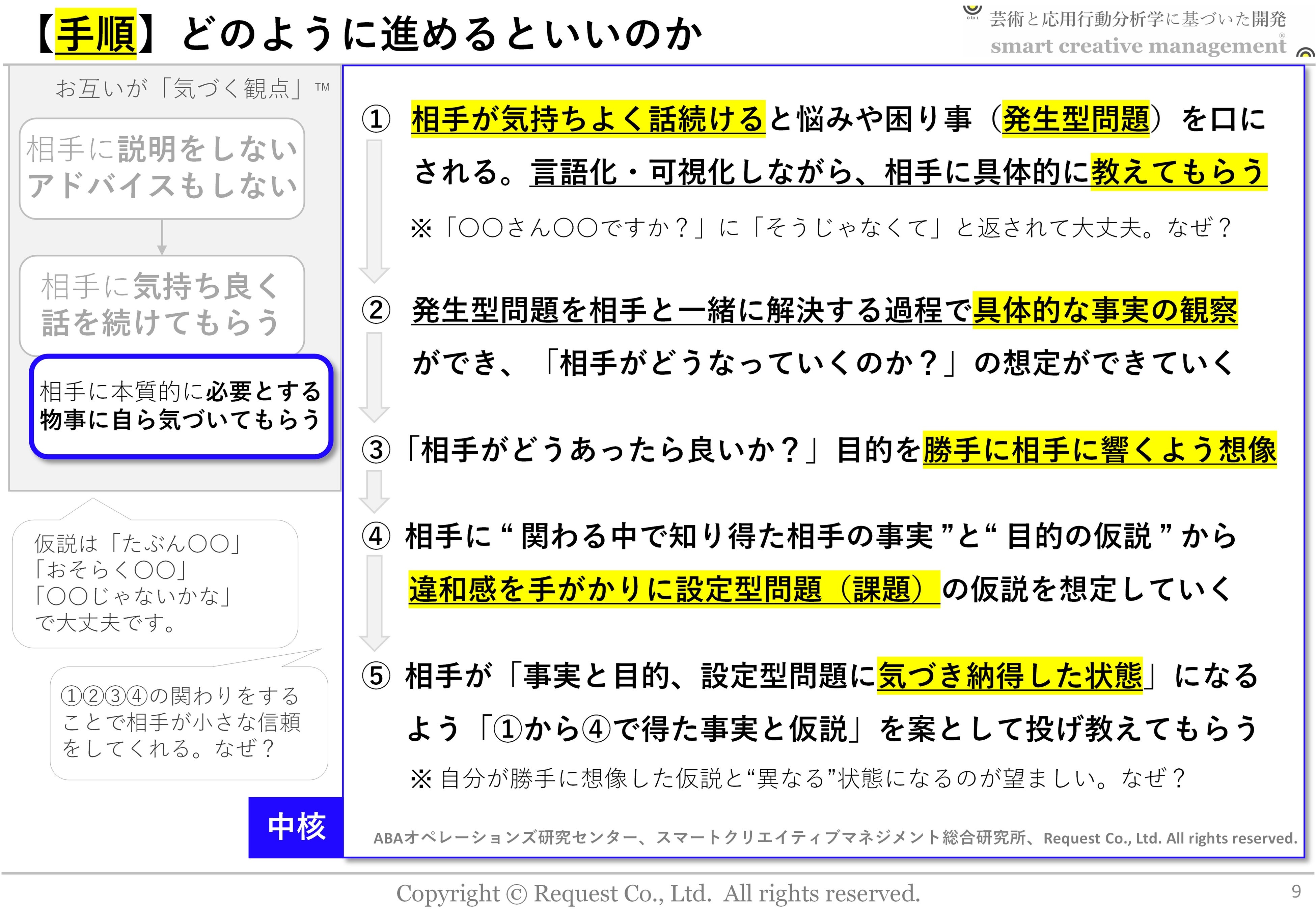 そんなことは「わかっている」「できている」誤った思考は、当人が具体的な経験をし、現状認識に誤りがあったことに気が付くことではじめて、変えることができる。当人以外が介入すると、上手く行かない原因を自分の外にもとめ他責で終える。他責にした瞬間、思考は停止する。本部の方針、上司の指示に対処してきている。それが目的化してしまっている。上手く行かない原因を他責にする思考パターンは持ち合わせている。特に、ある程度以上、経験も知識も技術も自信もあるベテランの担当者の場合、今まで身に付けた行動と思考を使うことで、すぐに達成感・快を得ることができる。自分が不慣れなことは容易に回避。(※原因は「人間の『行動テクノロジー』」を参照。 https://prtimes.jp/main/html/rd/p/000000043.000068315.html )。上手くいかに現実に直面すると、その状況を回避してしまう。これではいつまでたってもリーダーは育たない。
