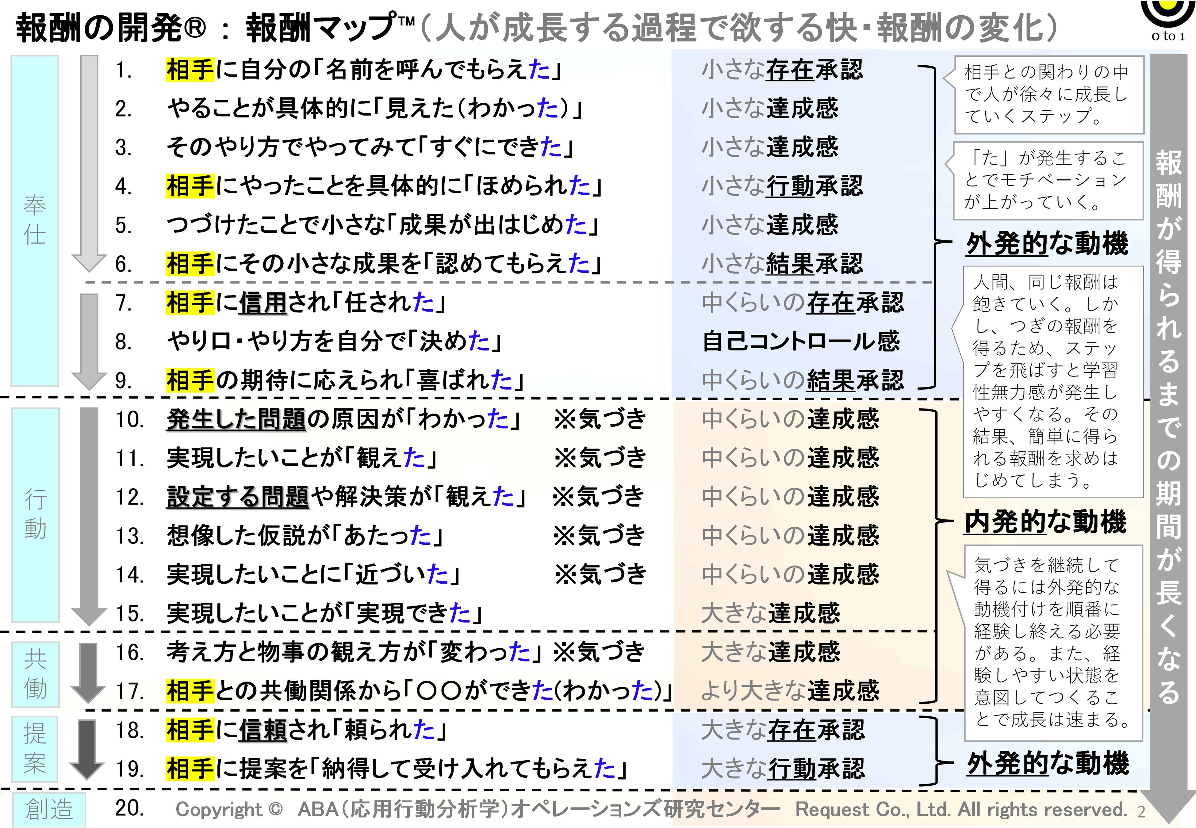 リーダー候補者に「〇〇すると良いです」と示唆すると、素直に文字通り記憶する。リーダー候補に推薦されるまで、組織の中で生き残っているため、「ポジションが自分より上」だと認知する人から言われたこと、その人が連れてきた「外部講師」が言うことは、まず記憶する習性・習慣を持っている。言われたことを記憶し使うことで「優秀」の印象付けがされ、それが継続する報酬になっている。