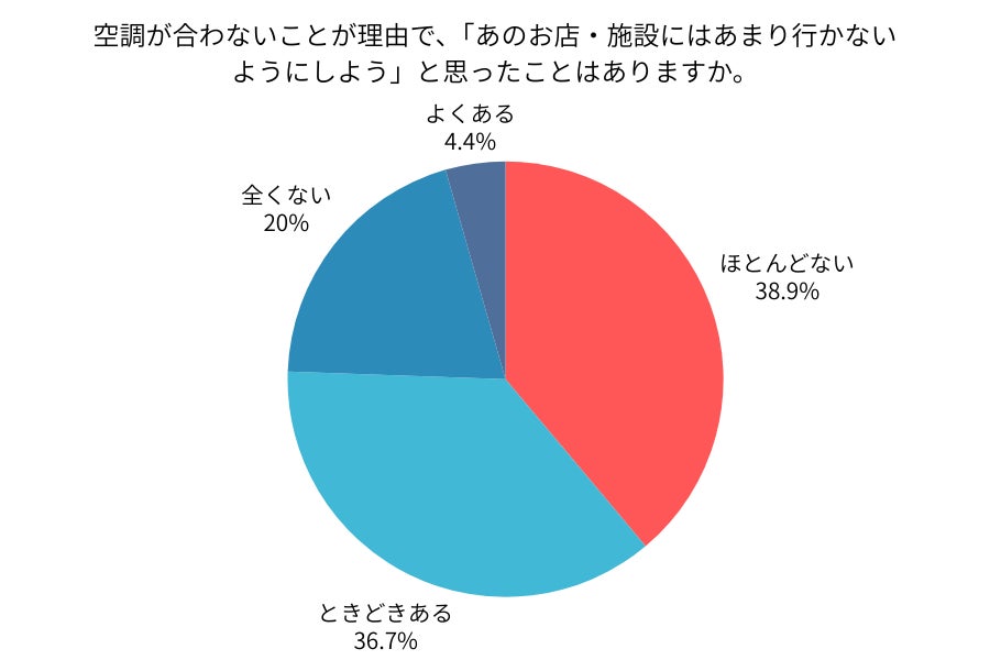 さらに、空調が合わないことを理由に「あのお店・施設にはあまり行かないようにしよう」と思ったことがある人は約41%に上りました。