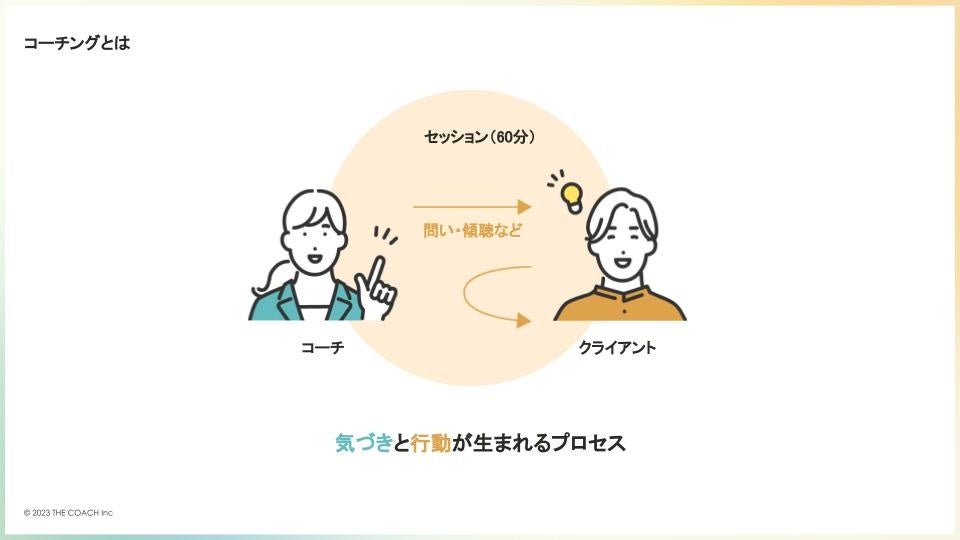 THE COACH™は、人や組織の内的な成長と向き合うコーチングカンパニーです。オンラインコーチングスクール「THE COACH Academy」、コーチングサービス「THE COACH Meet」、法人向け「THE COACH for Business」、教育領域「THE COACH for Education」を提供しています。