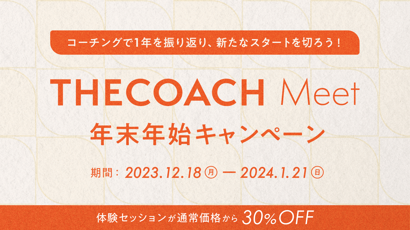共に歩むコーチと出会えるコーチングサービス「THE COACH Meet」体験セッションを通常価格の30%オフでご提供。
