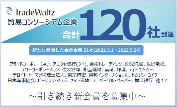 トレードワルツが事務局を務める「貿易コンソーシアム」一般公募開始から1年で会員企業数全120社到達