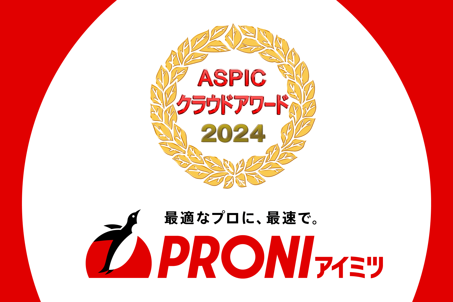 「中小企業の挑戦を支援し、日本経済の再成長に貢献する」PRONI株式会社(東京都品川区、代表取締役CEO 柴田大介、代表取締役Founder 栗山規夫)は、一般社団法人日本クラウド産業協会(通称:ASPIC、東京都品川区、会長:河合 輝欣)が2024年11月20日(水)に発表した「第18回 ASPICクラウドアワード2024」において、BtoB受発注プラットフォーム「PRONIアイミツ」( https://imitsu.jp/ )が基幹業務系ASP・SaaS部門の「先進ビジネスモデル賞」を受賞したことをお知らせします。