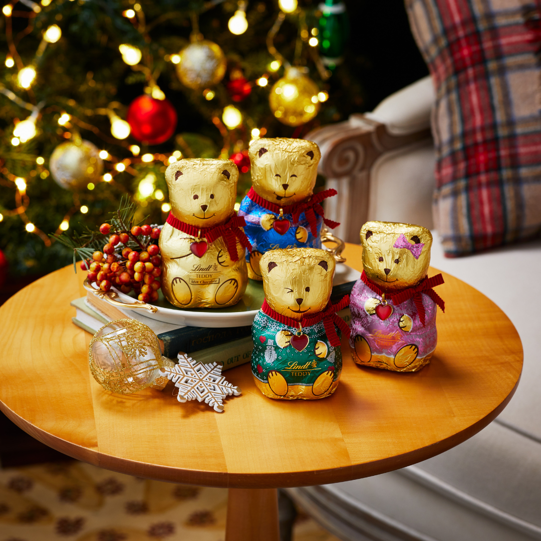 期間中、店舗にて6,500円(税込)以上の商品をお買い上げいただいたお客様に、グリーンやブルーの可愛らしい寝間着を着たミニリンツテディチョコレートのアソートパックをプレゼントいたします。なくなり次第終了となりますので、お早めのご来店をお待ちしております。