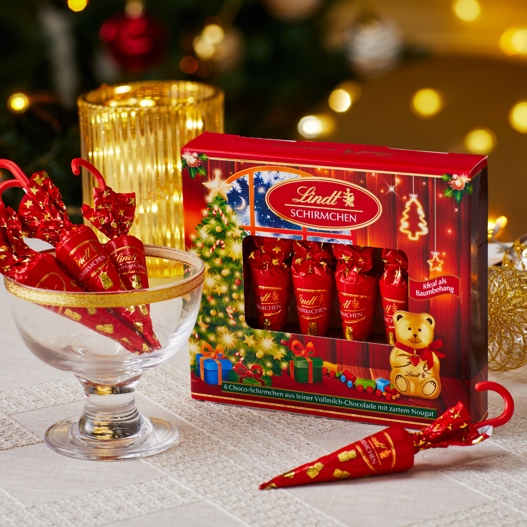 お子様に大人気のアンブレラ型チョコレートが、リンツテディが描かれた包みになって新登場!パッケージはリンツテディのお部屋をイメージ。6本入りで、家族や友達とシェアするのもおすすめです。