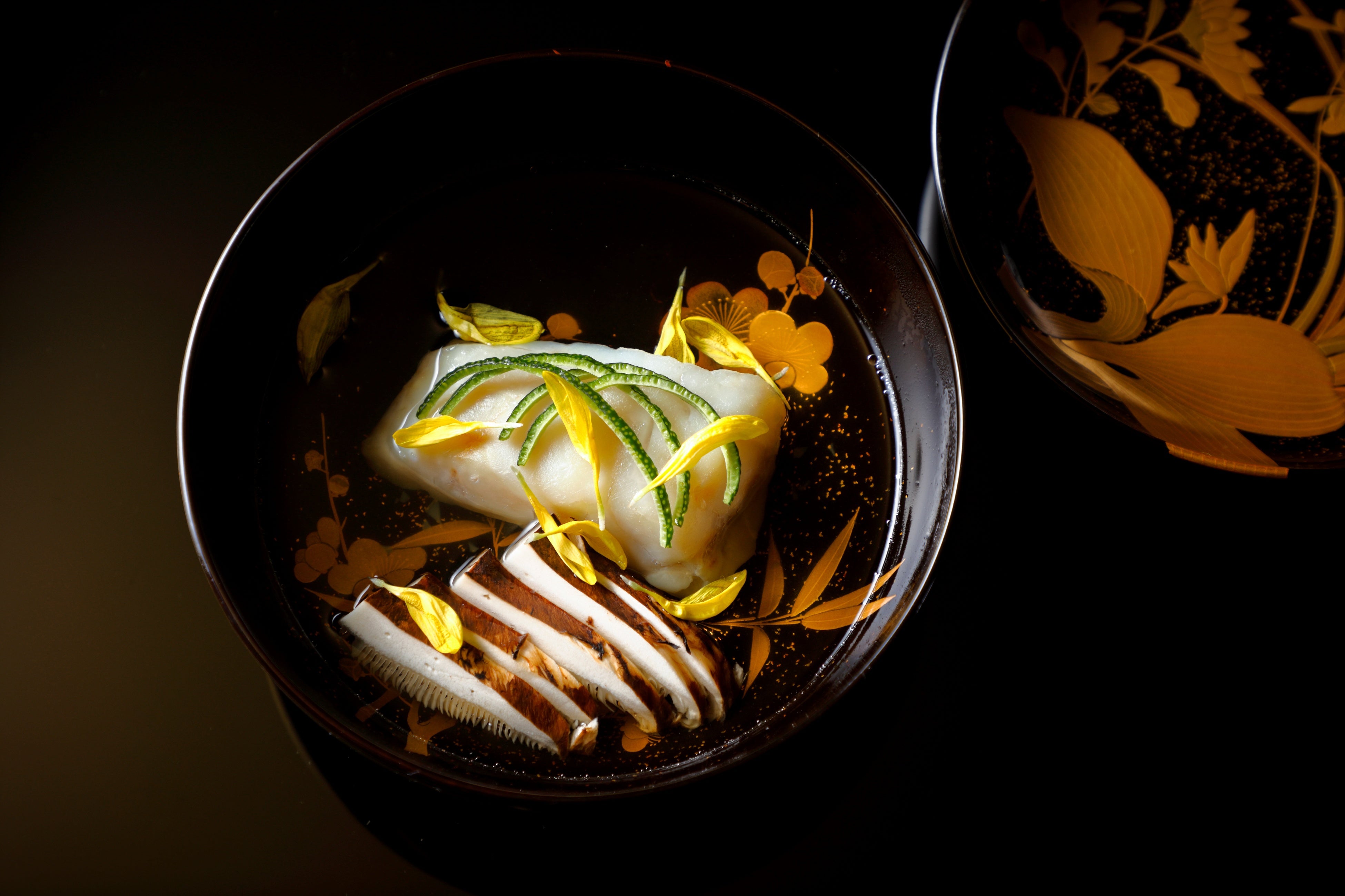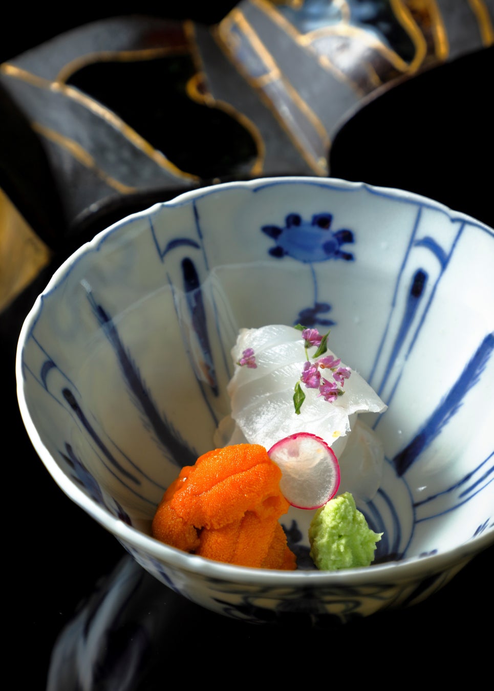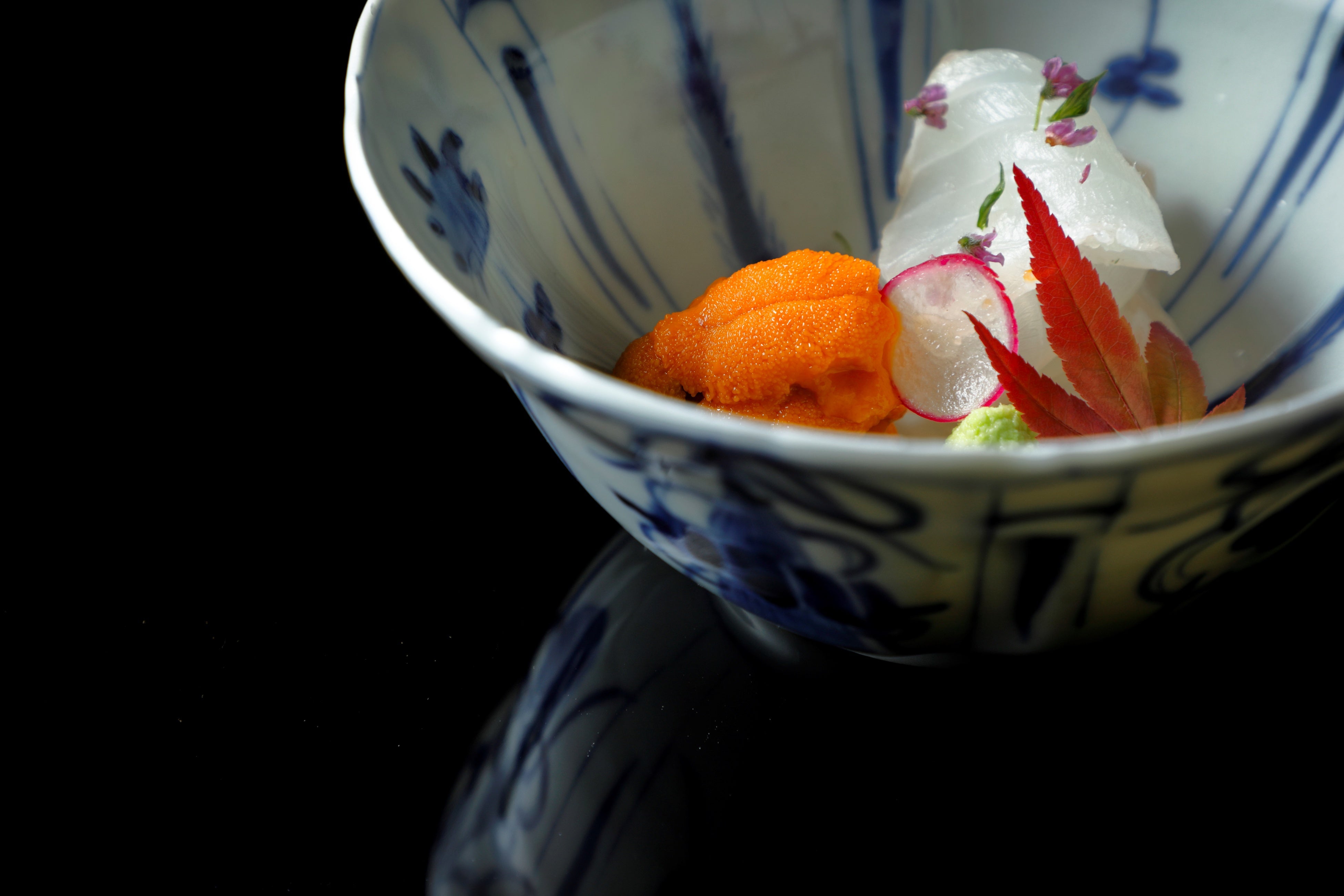 アマン京都の美学に独自の創造性を重ね日本料理「鷹庵」を率いてきた髙木慎一朗は、このたびの茶会を “一堂に会し、お茶をもってもてなすこと” と定義し、秋の味覚と髙木ならではのユニークな食材で仕立てる懐石料理をライブ感あふれる1枚板のカウンターでふるまいます。