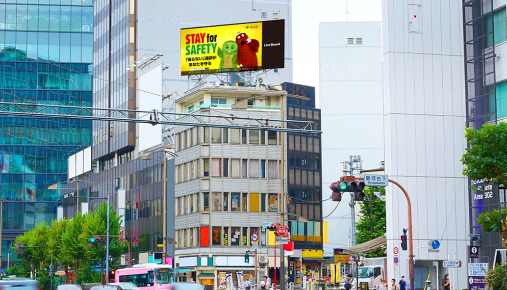 株式会社 LIVE BOARD(本社:東京都渋谷区、代表取締役社長:櫻井 順 以下、LIVE BOARD)は、東京都千代田区靖国通り沿いに設置している3カ所のデジタルOOH※1(神田小川町_オオタビル・神田須田町_井上ビル・神田須田町_久保キクビル)より、「帰宅困難者向け啓発動画」の放映を開始します。