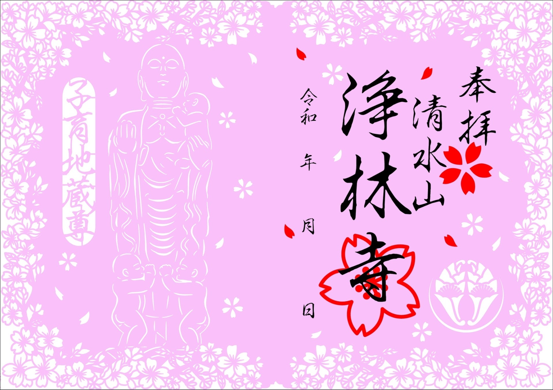 仏画の修復後初公開を記念して、先着50名様に「切り絵御朱印」を限定配布いたします。境内に並ぶ桜、子育地蔵尊をモチーフにデザインしました。
