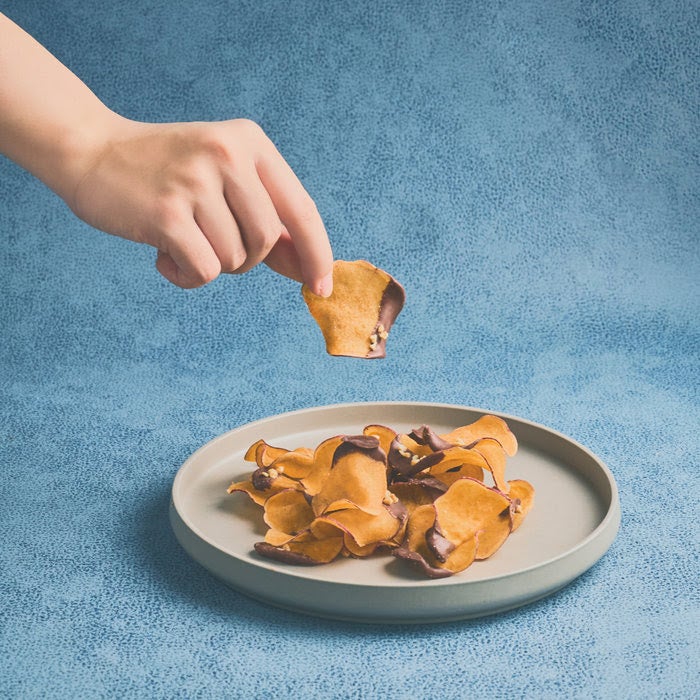 6.Craft Cacao Chips チョコがけ蜜芋けんぴチップス -THE Cacao Edition-:溢れる甘さが特徴のさつまいも「べにはるか」をパリッと揚げ、フルーツのような酸味を持つドミニカ共和国産カカオを使用したチョコレートでコーティングしました。甘さと酸味が心地よく広がる、奥行きのある味わいです。