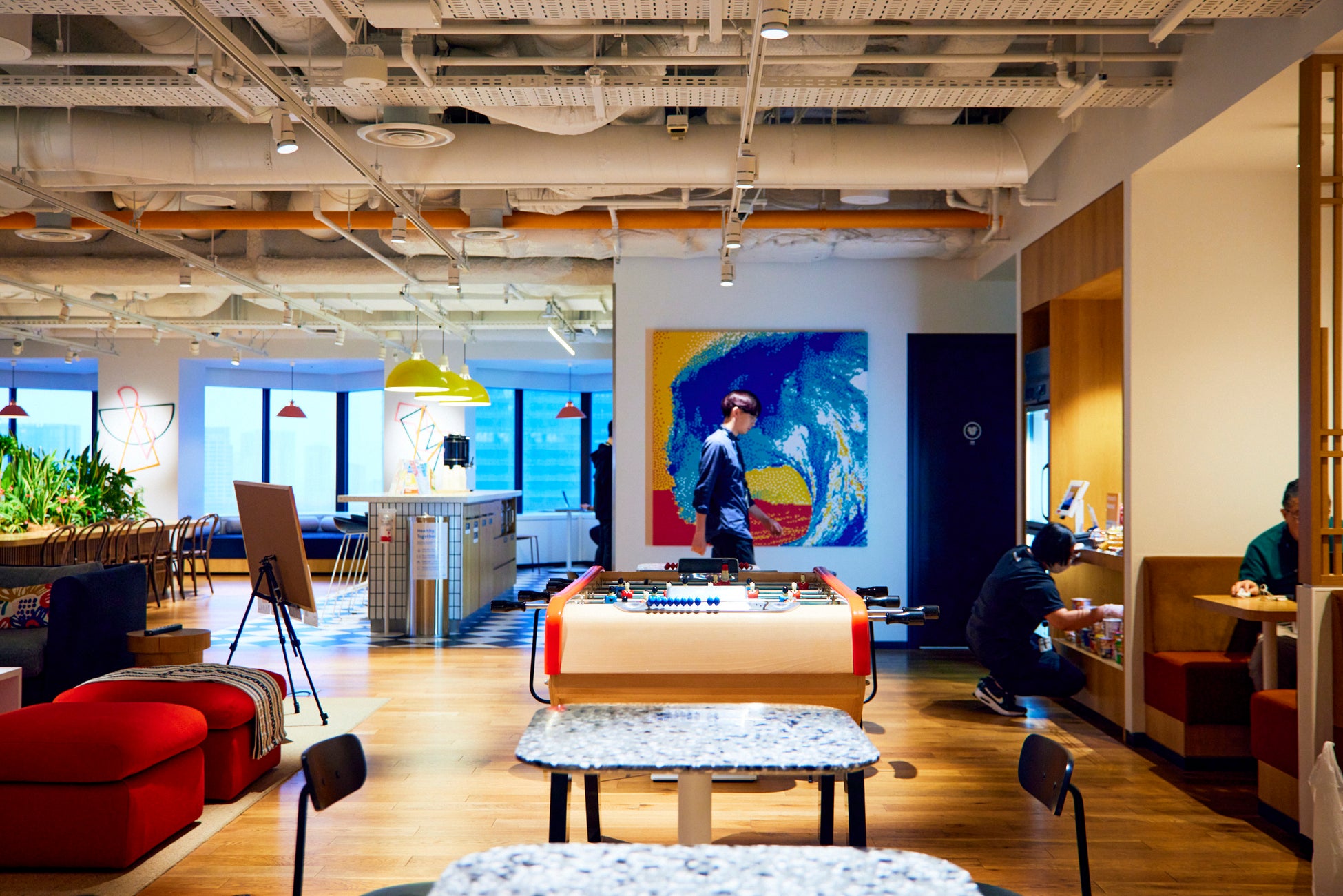 また、 このスペースでは WeWork 主催による定期的なイベントが行われ、交流の場が設けられます。普段はなかなか話す機会のない社員や WeWork に入居する他社メンバーなどへも容易にコミュニケーションが取れる環境を提供されます。