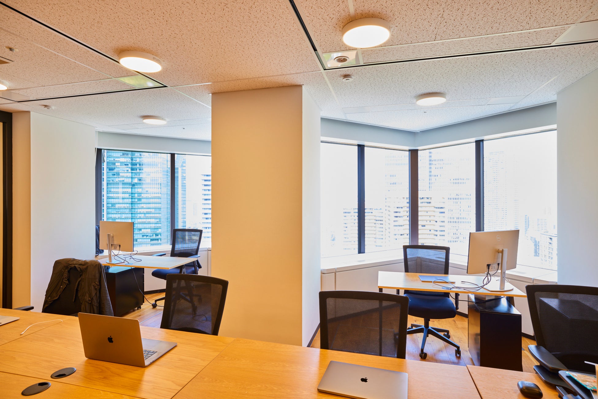 大きな窓から差し込む陽の光や綺麗な景色が執務室の環境をより良いものにしてくれます。このスペースには会議室が3室備え付けられており、商談や来客者、簡易打合せが占有スペース内で完結します。