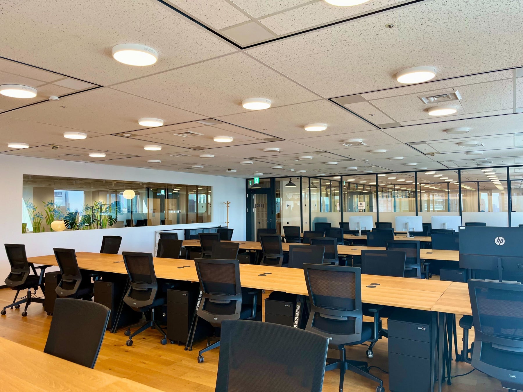 22階オフィススペースには本社を構え、バックオフィスや研修期間中の方が席を置きます。