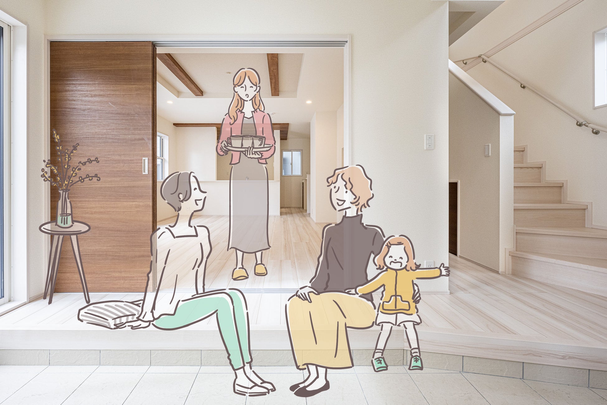 「玄関と居間の間に新たに生まれたお楽しみ土間空間」