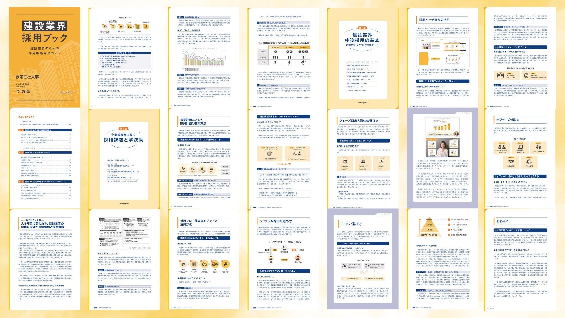 マルゴトは540社以上の採用支援の実績を持ち、建設業界においても、数多くのサポートを行っております。これらの豊富な知見をもとに、建設業界で採用に課題を感じている方々の力になればとの想いで『建設業界採用ブック』を制作しました。