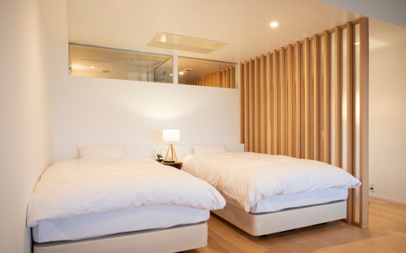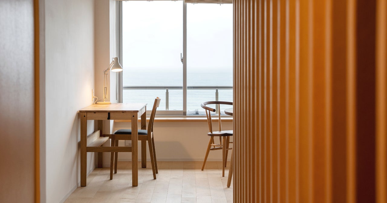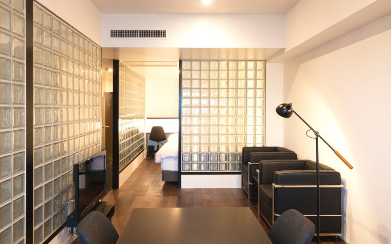 814号室・HIKARI(ひかり)の特徴は「ガラス」。複数のガラスと太陽の光から生み出されるきらきらとした光が満ち溢れた部屋となりました。815号室・AKARI(あかり)は、「木の格子」を特徴とし、木のぬくもりと太陽の光が交わって、あたたかな明かりを感じることのできる部屋となりました。