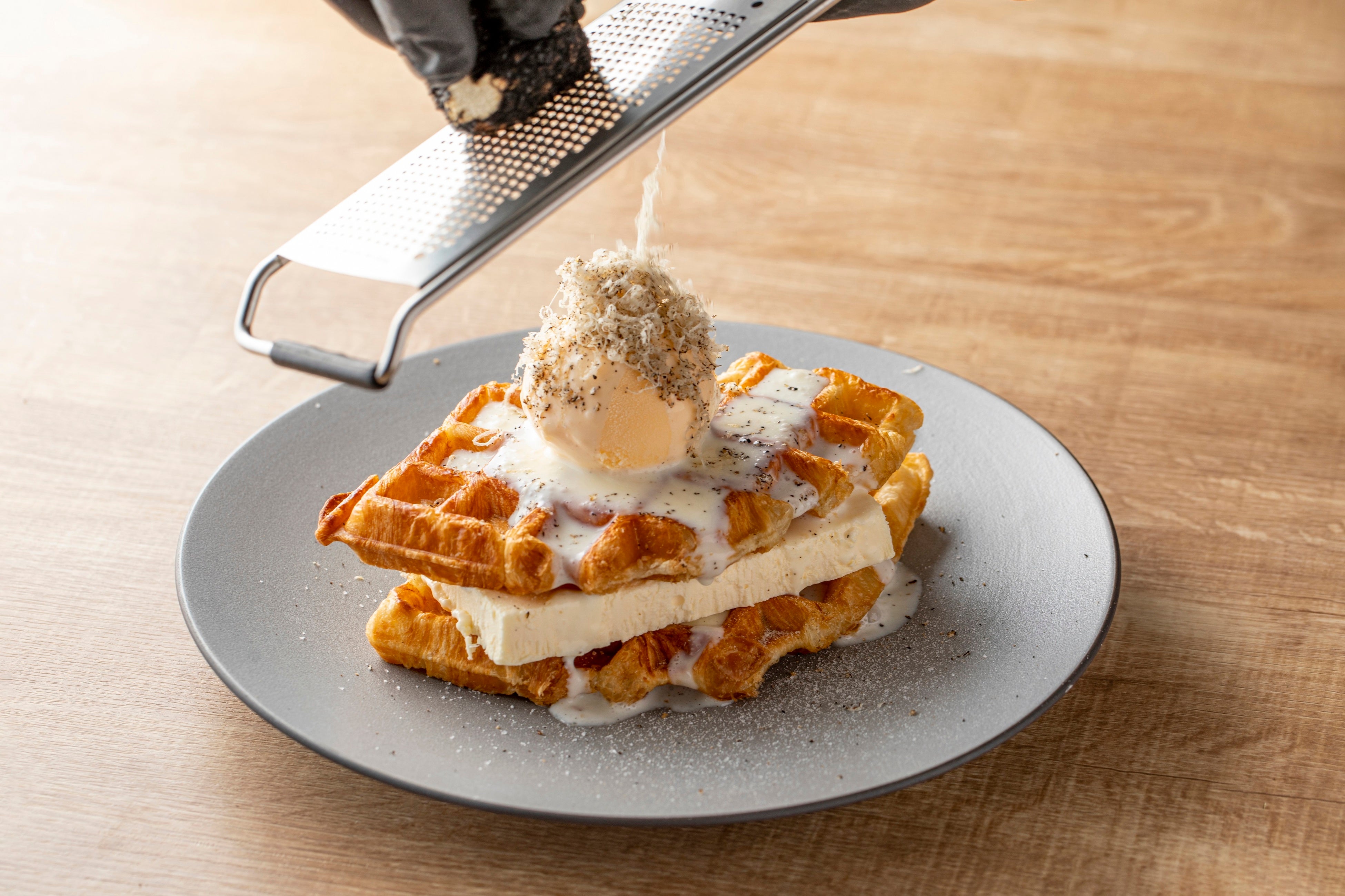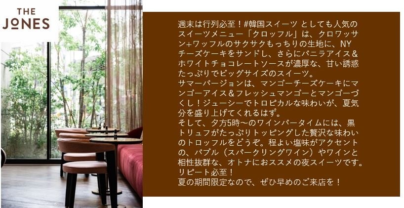 すべては夏のせいにして、濃厚スイーツに溺れよう♡西新宿・甲州街道に謎の大行列を巻き起こす、ザ・ジョーンズ カフェ&バーの大人気メニュー「クロッフル」に初夏の味覚の新フレーバーが登場!
