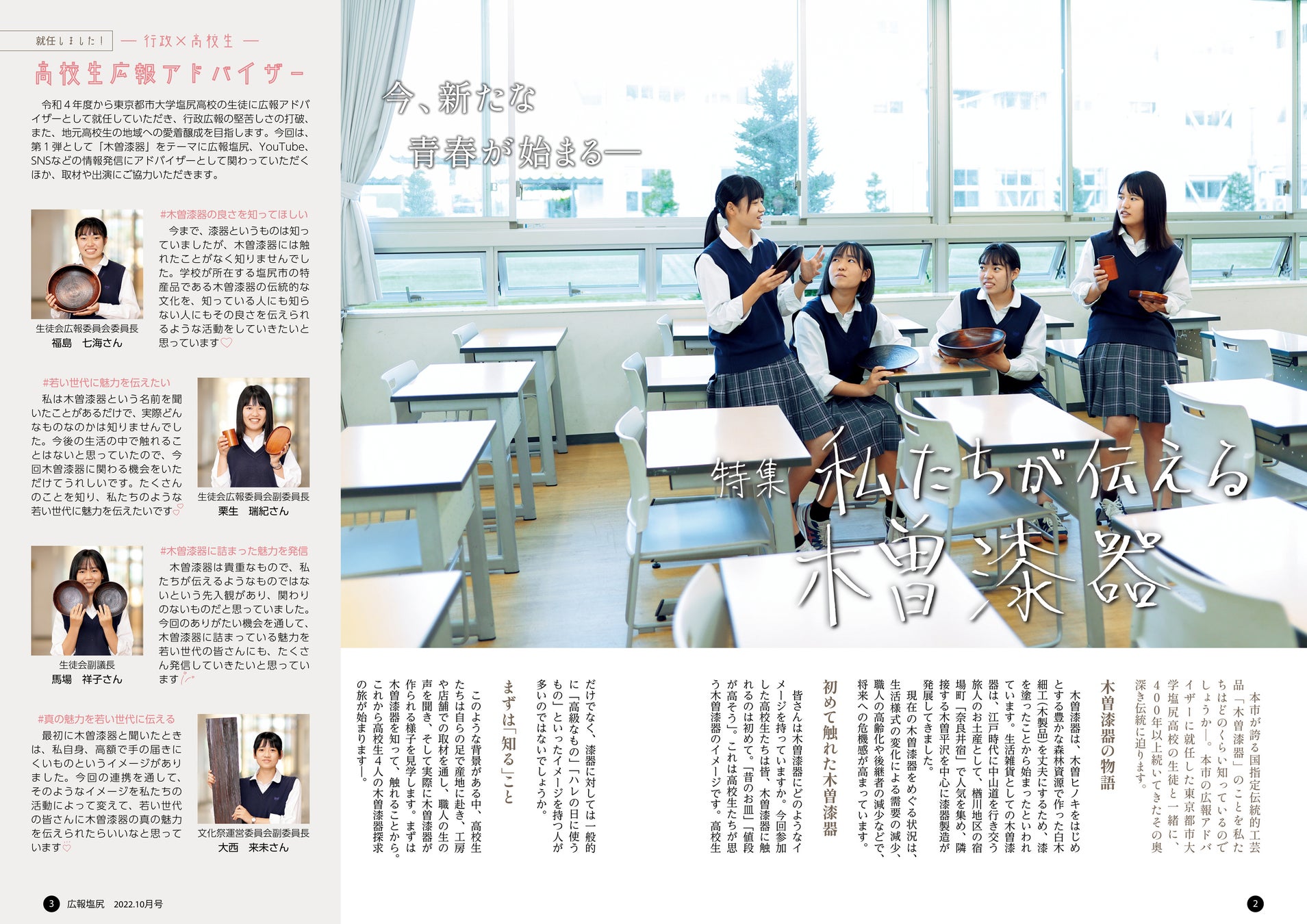 ~10月1日から高校生広報アドバイザーが「私たちが伝える木曽漆器」をテーマに広報塩尻やSNS、YouTubeを使った情報発信を行います~