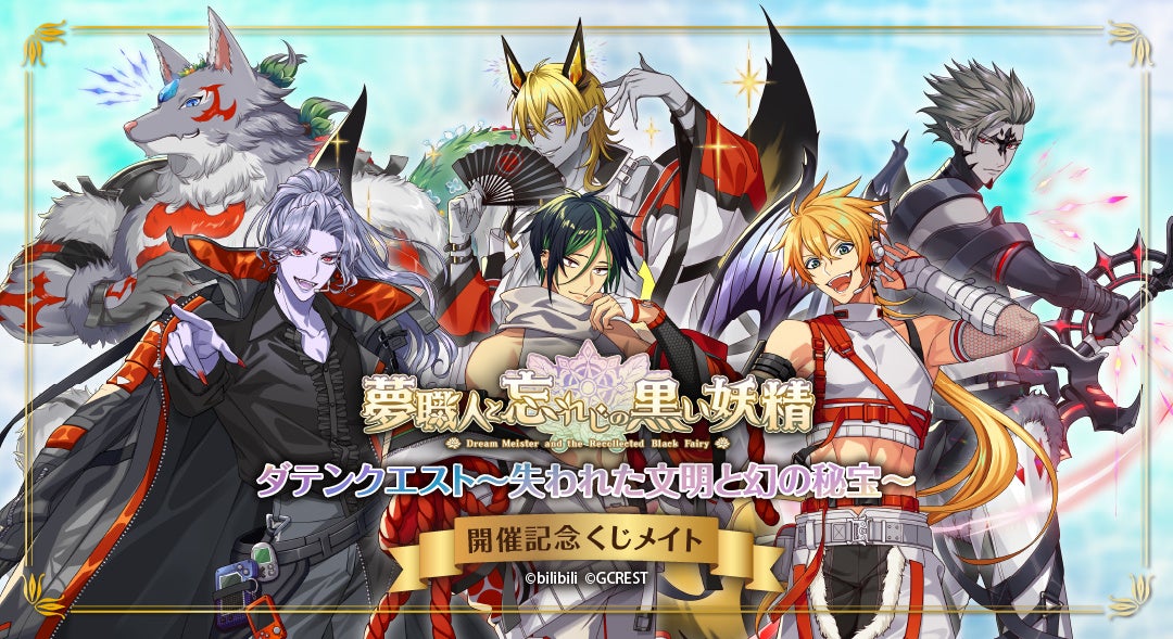 株式会社マズル(本社:東京都千代⽥区 代表取締役:近内 裕基)は、オンラインくじサービス「くじメイト」(アニメイト通販)にて、『夢職人と忘れじの黒い妖精』〜ダテンクエスト開催記念 くじメイト〜 を販売いたします。