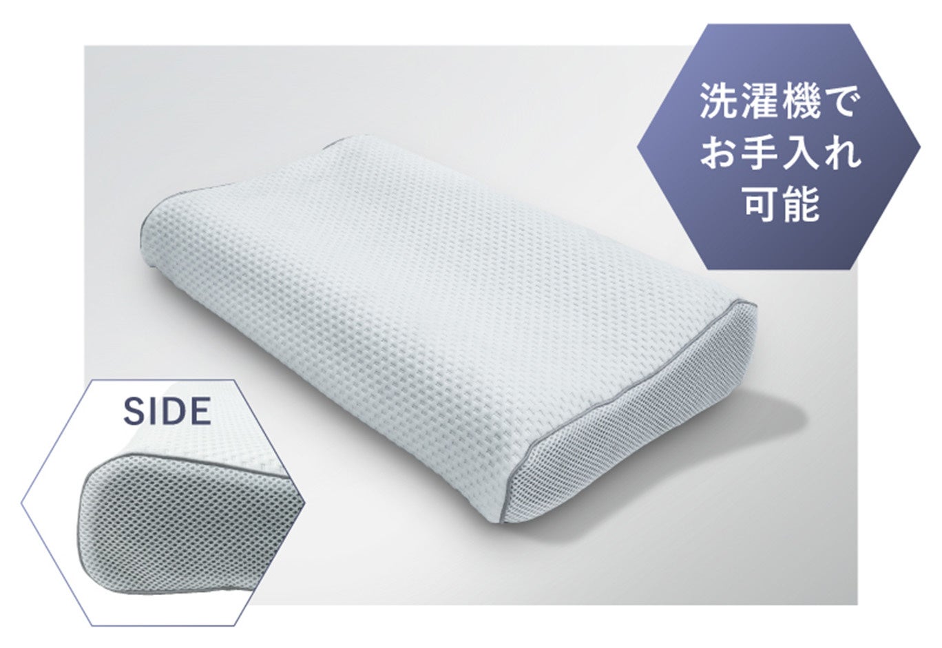 さらに、枕本体は水やぬるま湯で丸洗いが可能なため、汚れやにおいを簡単に落とせて、清潔さを保てます。また、専用の伸縮性に優れた枕カバーが付属しており、洗濯機で手軽に洗えるため、お手入れが簡単です。枕本体とカバーの両方を清潔に保つことで、安心して長期間ご使用いただけます。通気性と清潔さを兼ね備え、快適な睡眠環境をお届けする、これからの時代の新しい形の枕です。