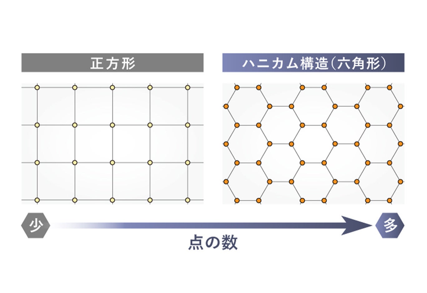 SOOMIN PILLOWの特徴のひとつである「ハニカム構造」は、正六角形を隙間なく並べた形状が特長です。この構造は、英語で「honeycombs(蜂の巣)」に由来しており、そのデザイン性と機能性からさまざまな分野で高く評価されています。