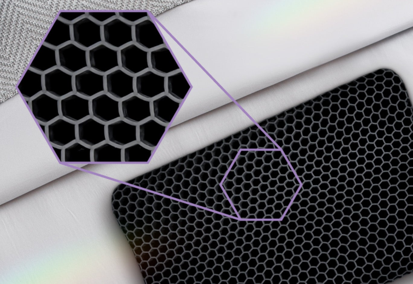 正六角形を隙間なく並べたハニカム形状を採用しているので、優れた通気性を実現。