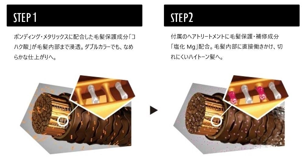 ボンディング・テクノロジーはダメージから髪を保護し、補修する働きがあるので、ブリーチやカラーを重ねても傷みにくく、ダメージから髪をしっかりと守りながらハイトーンカラーを楽しむことができます。