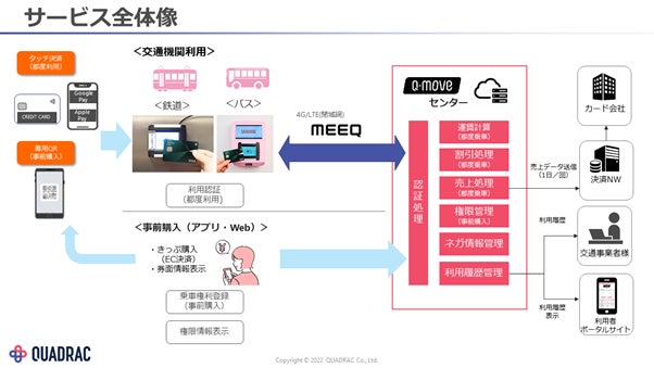 QUADRACでは今後、『MEEQ』を活用することで、駅の改札機やバス車内など全ての拠点をモバイル回線でつなぎ、スケーラブルなプラットフォームの実現を目指します。