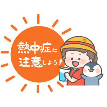 スポーツ時には体(筋肉)が熱を発し、体力も消耗するため、熱中症の危険が高まります。なるべく涼しい時間を選んで実施したり、30分に1回程度を目安に休憩をとったりするなど、いつも以上に熱中症予防・対策をしましょう。また、蒸し暑い日や体調が優れない日は、気温があまり高くなくても、熱中症に注意が必要です。