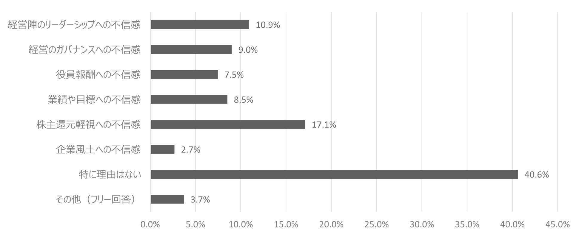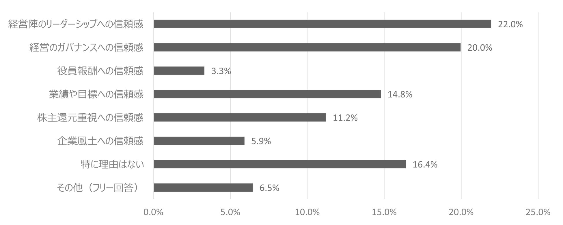 賛成の理由は「特になし」が最多、反対の理由は「経営陣のリーダーシップへの信頼感」が最多となった。