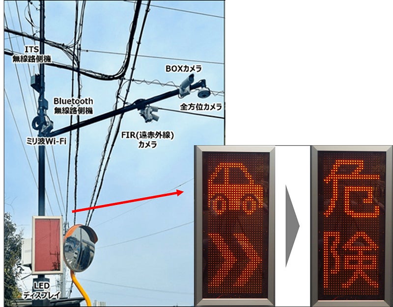 交差点に設置するLEDディスプレイ表示により運転者等への注意喚起を開始