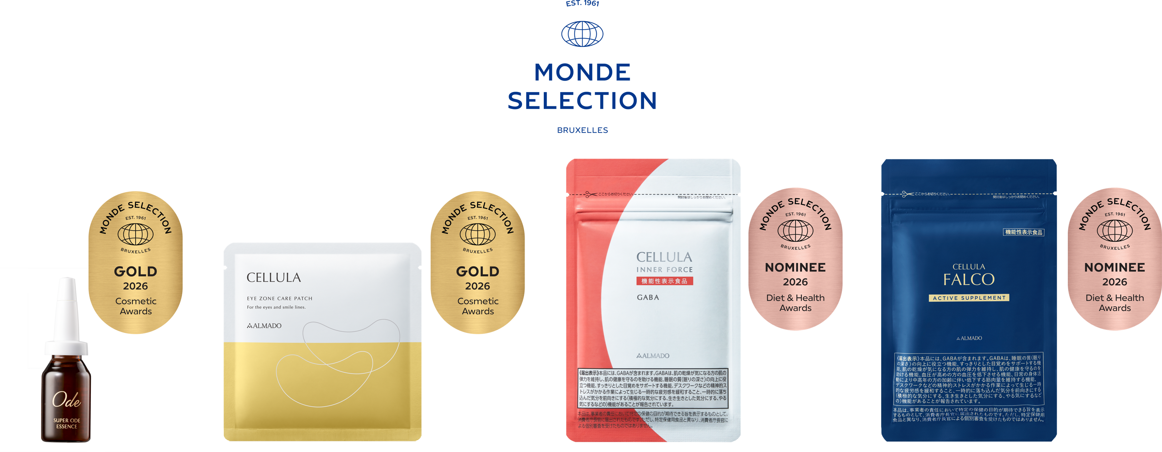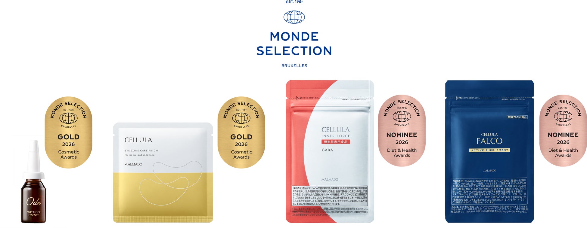 今回の受賞により、「スーパーオーディ」「チェルラー アイゾーンケア パッチ」「チェルラー インナーフォース」「チェルラー ファルコ アクティブサプリメント」は各部門において特に優れた製品の