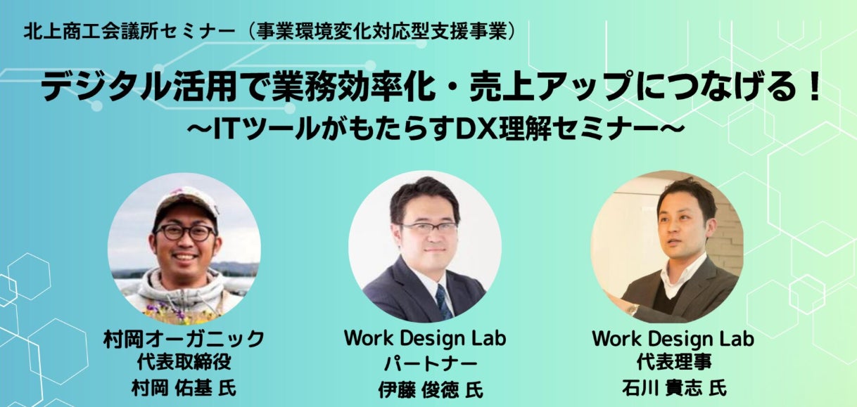 一般社団法人Work Design Lab様と北上商工会議所では2024年4月に「多様な人材活用による中小企業のデジタル化推進(支援)に向けた連携に関する協定」を締結し、中小企業向けのデジタル化実践に向けたイベントなどを開始し、当地域での活動を展開して頂いておりました。
