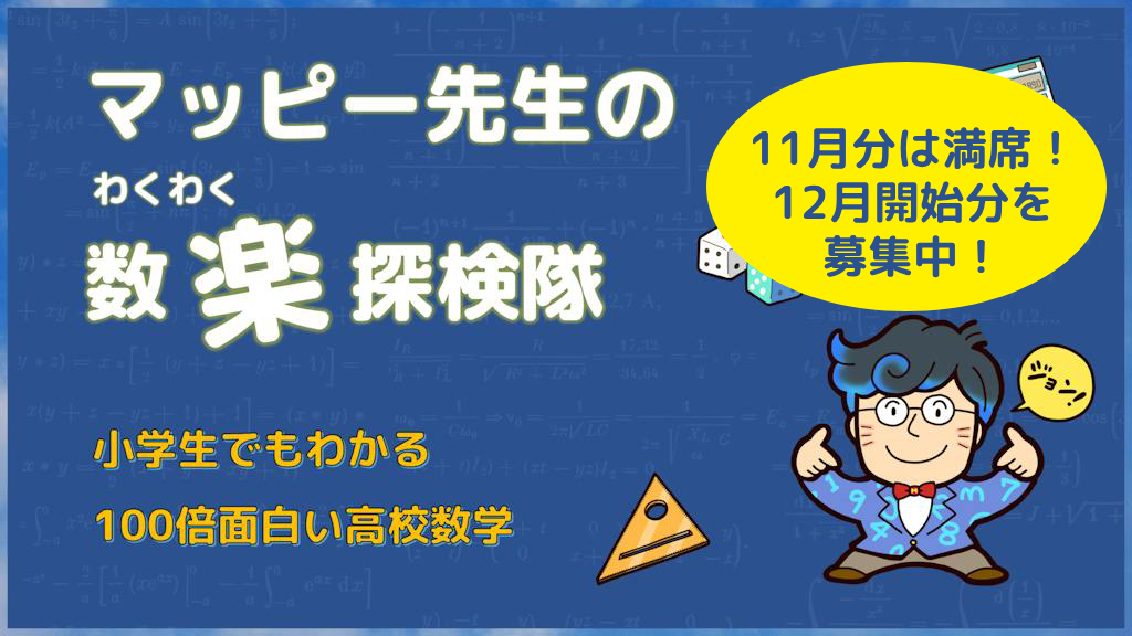 11月から開講している、東大専門有名塾元講師のマッピー先生による、中学・高校の数学の考え方を小学生でもわかりやすく楽しく学べるクラス「数"楽"探検隊」について、募集枠の40名が満席となったため、新たに12月から参加できる枠を40席追加しました!