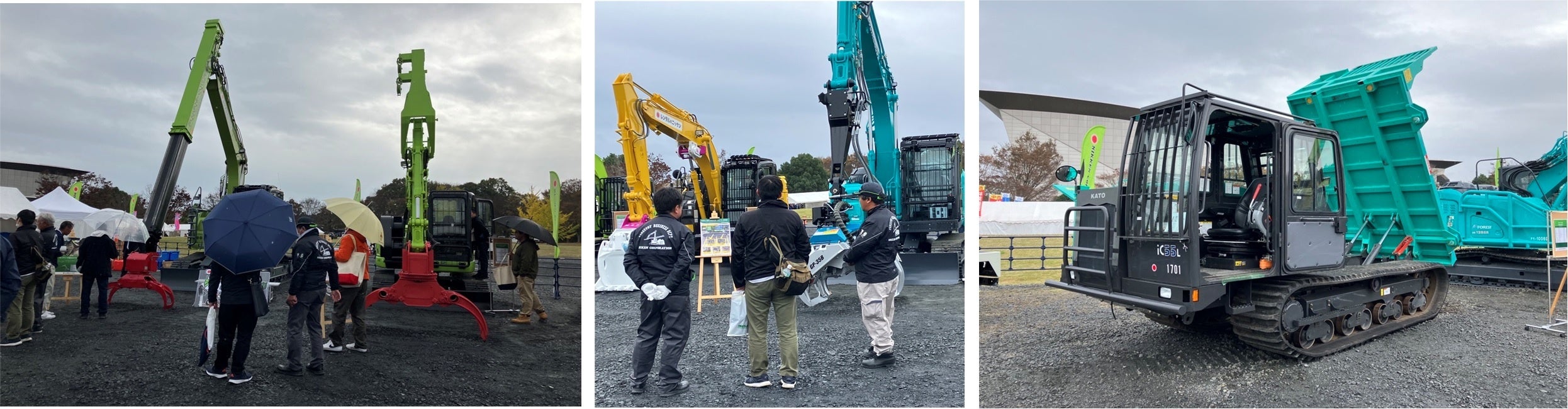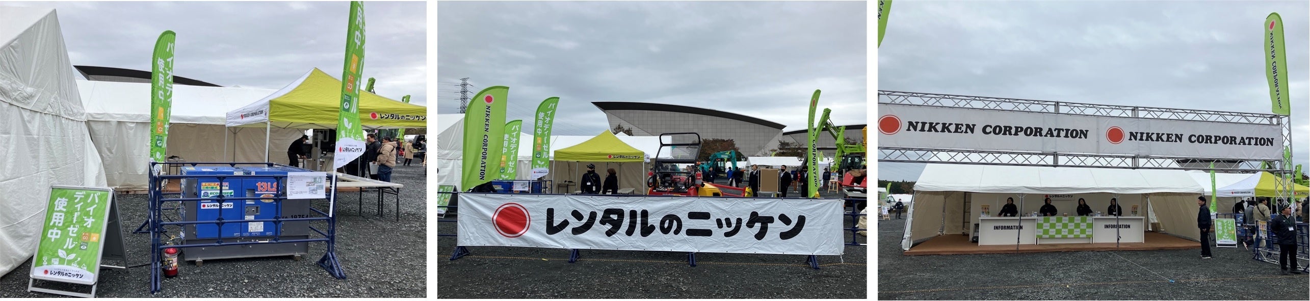 当社は商品開発や、レンタル品の使用燃料において環境・脱炭素の観点からバイオディーゼル燃料の採用や、EV商品の導入を推進しております。今回の展示ブースでも林業分野で活躍が見込まれる電気自動車や会場の仮設電源として使用した可搬型発電機の軽油代替燃料として、次世代バイオディーゼル燃料を使用し、カーボンニュートラル実現への取り組みを行いました。