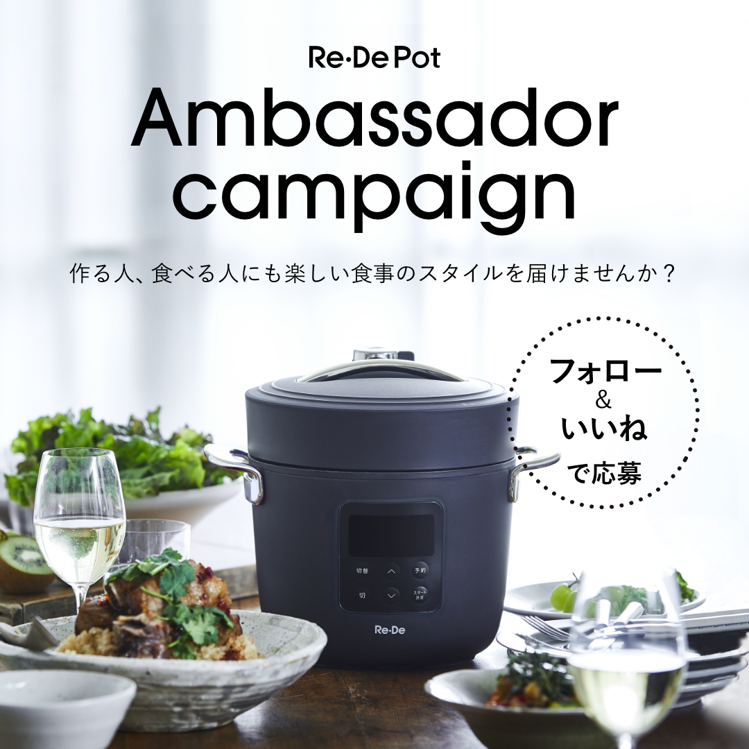 高級炊飯器のような炊飯性能とデザイン性が人気の電気圧力鍋「Re・De Pot(リデポット)」が公式アンバサダーを6/1(木)までInstagramにて募集!