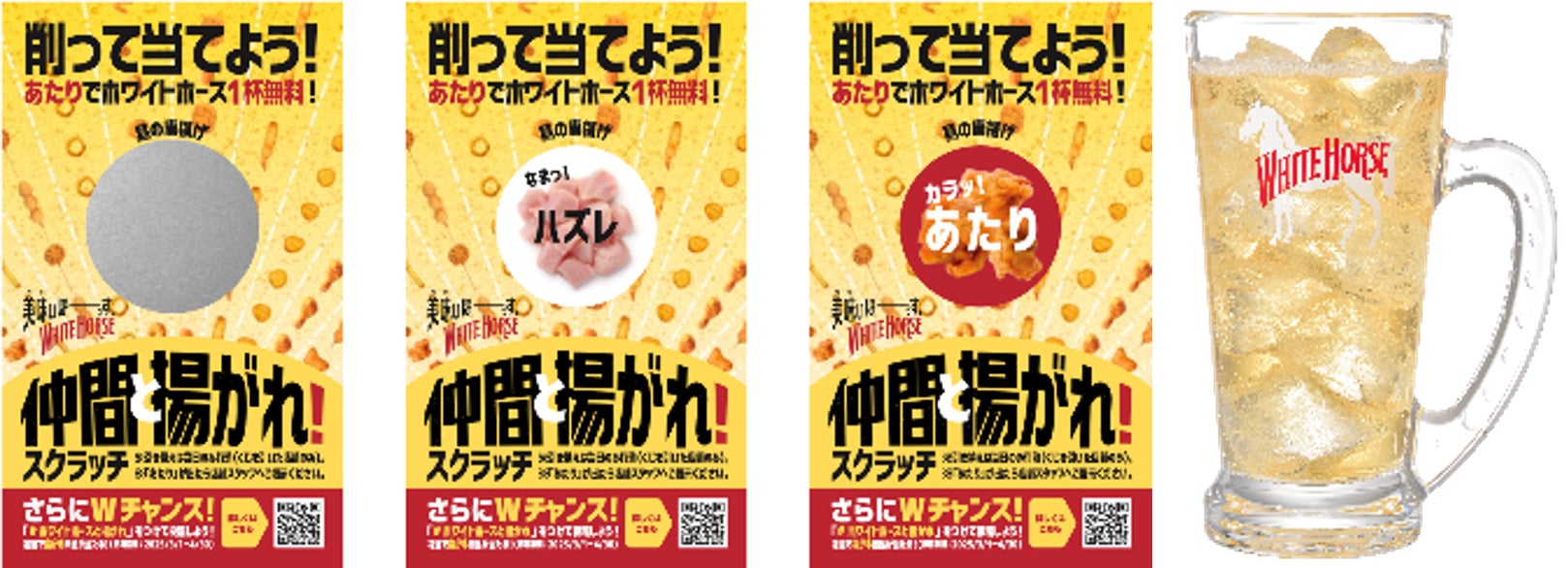 「ホワイトホース」が1杯無料になる、「仲間と揚がれ!スクラッチ」