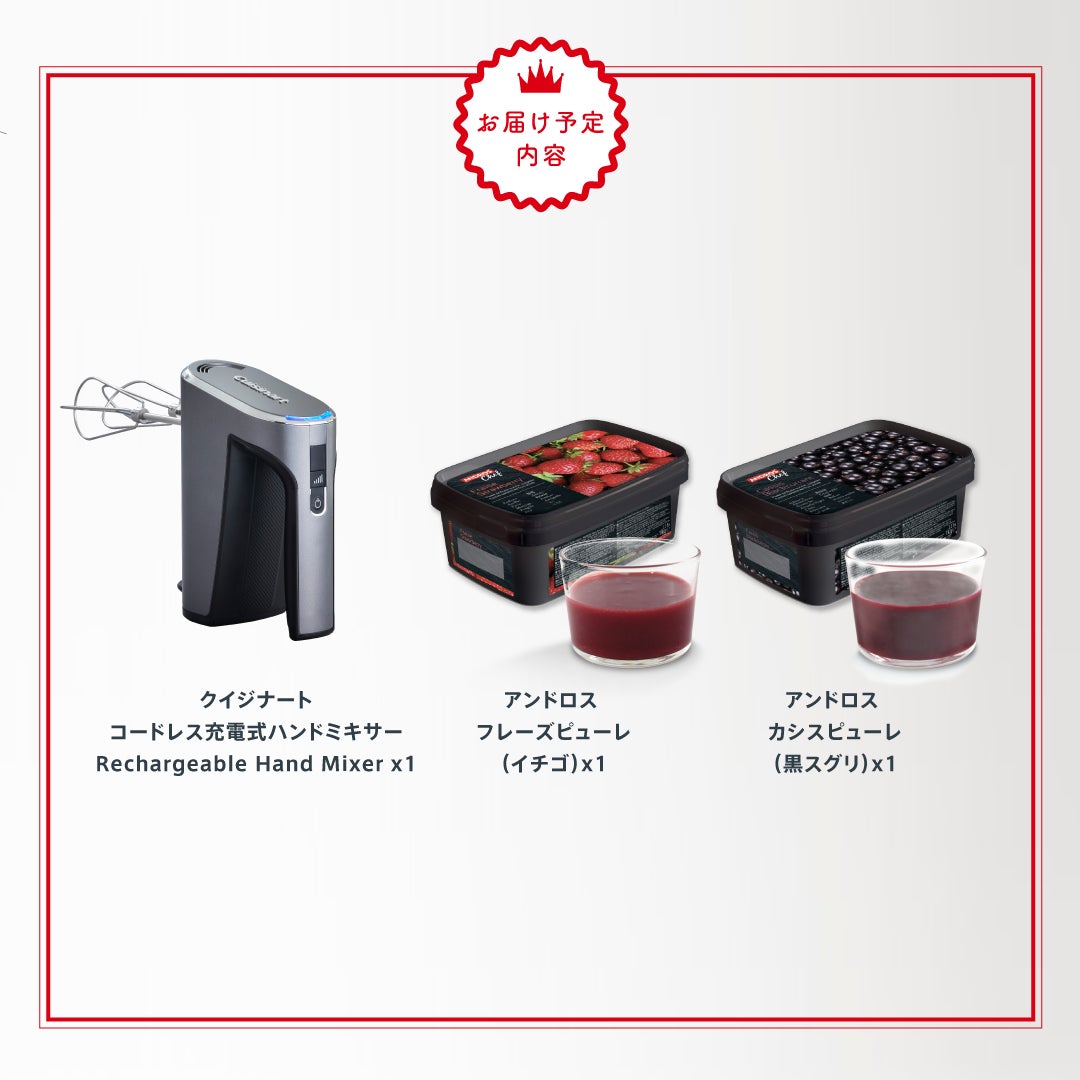 フランスのフルーツ加工メーカー「andros(アンドロス)」は、2023年10月13日(金)~10月29日(日)の期間中、Instagramキャンペーンを開催いたします。当選者の3名様にはアンドロスのフルーツピューレ2種類とクイジナートのコードレス充電式ハンドミキサーをセットにしてお届けする予定です。