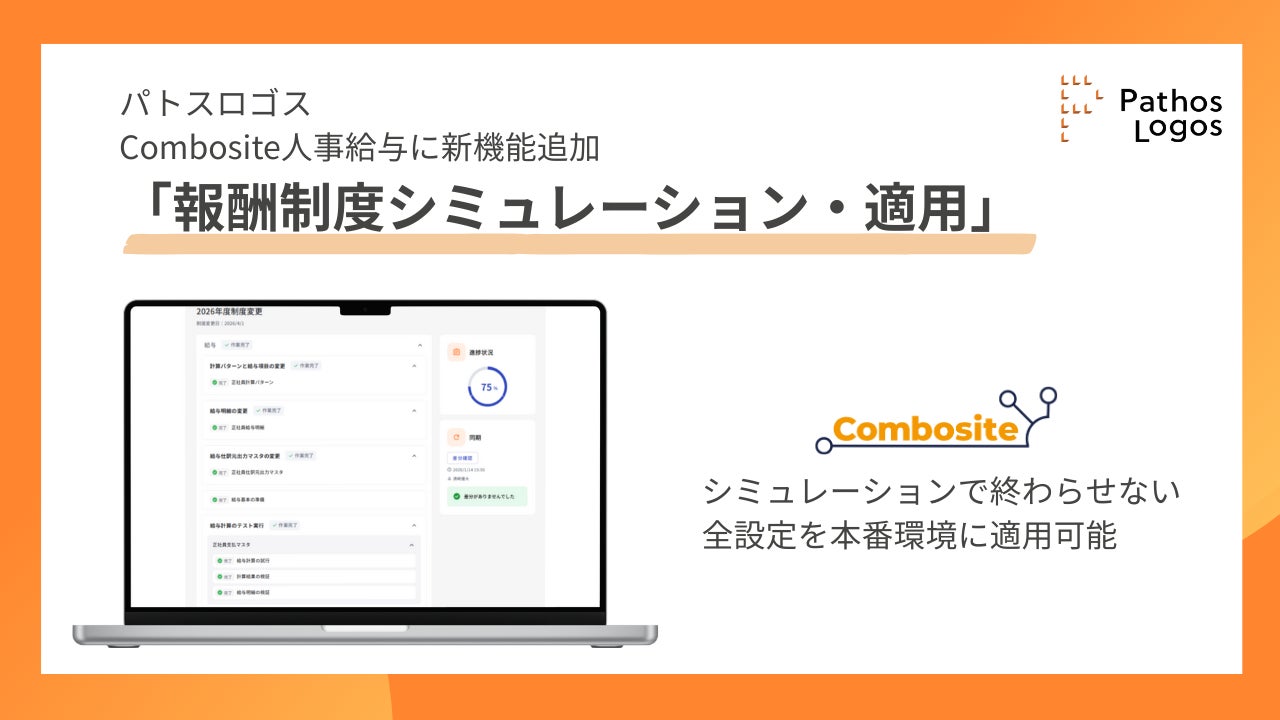 株式会社パトスロゴス(本社:東京都品川区、代表取締役CEO:牧野 正幸、以下「当社」)は、当社が提供する大企業向け人事給与SaaS「Combosite(コンボジット)人事給与」に新機能「報酬制度シミュレーション・適用」を追加しました。本機能は、報酬制度改定に伴う変更箇所の設定から、給与計算の試行・検証・結果照合、本番環境への適用までを、制度変更プロジェクト単位で一元管理し、画面上で完結させるものです。これにより、大企業の報酬制度改定における検証負荷とリスクを大幅に削減し、制度改定に伴う給与改定をよりスムーズに運用できるよう支援します。