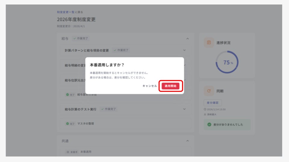 検証済みの変更内容は、適用日を指定して本番環境へ一括適用できます。
