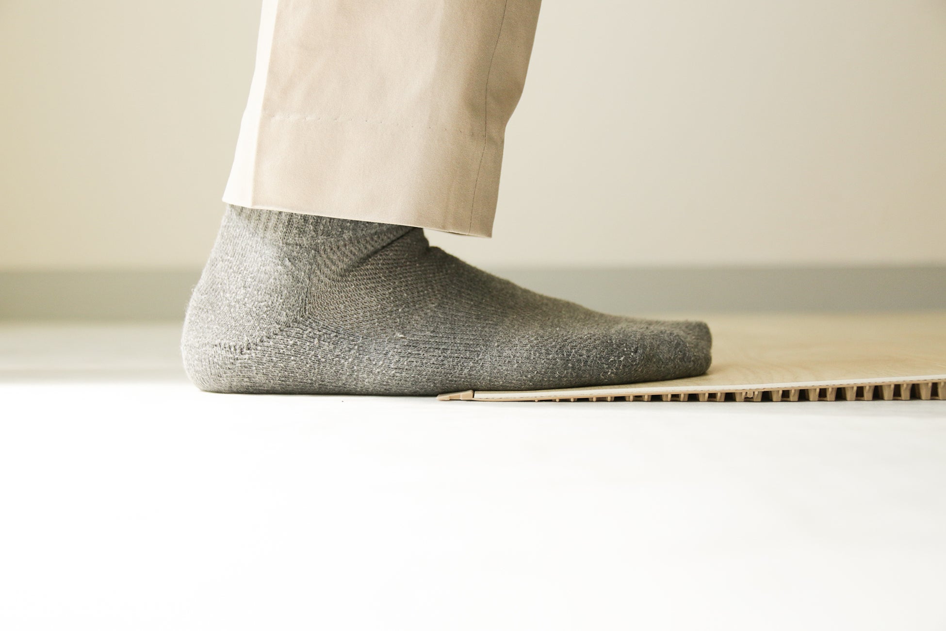 「ころやわ」は、これまで両立が困難とされていた「歩行快適性」と「衝撃吸収性」という2つの性質を合わせ持つ、今までにない構造を採用した、転んだ時には凹んで衝撃を低減しつつ普段は快適に歩ける新しい床材です。歩行困難に陥りやすい大腿骨の骨折は、高齢者の場合、221kgf以上の荷重がかかると発生するといわれています。「ころやわ」を敷くだけで150kgf程の荷重に低減でき、大腿骨の骨折リスクは大幅に低減します。