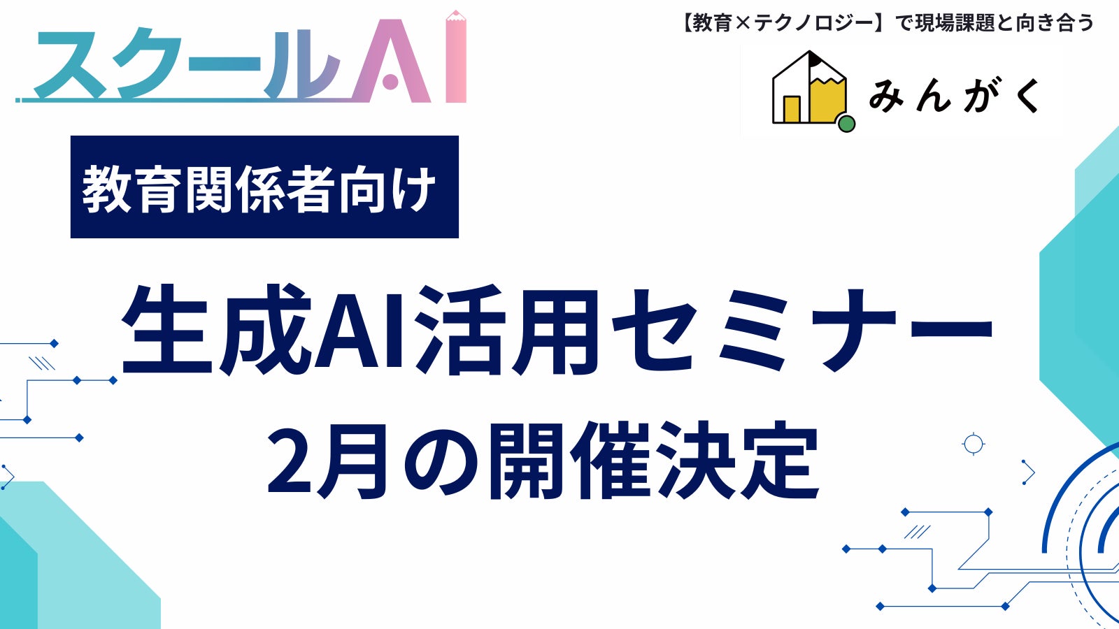 株式会社みんがくが、教育関係者向けに生成AI活用に関する無料セミナー(2月分)の開催予定を発表